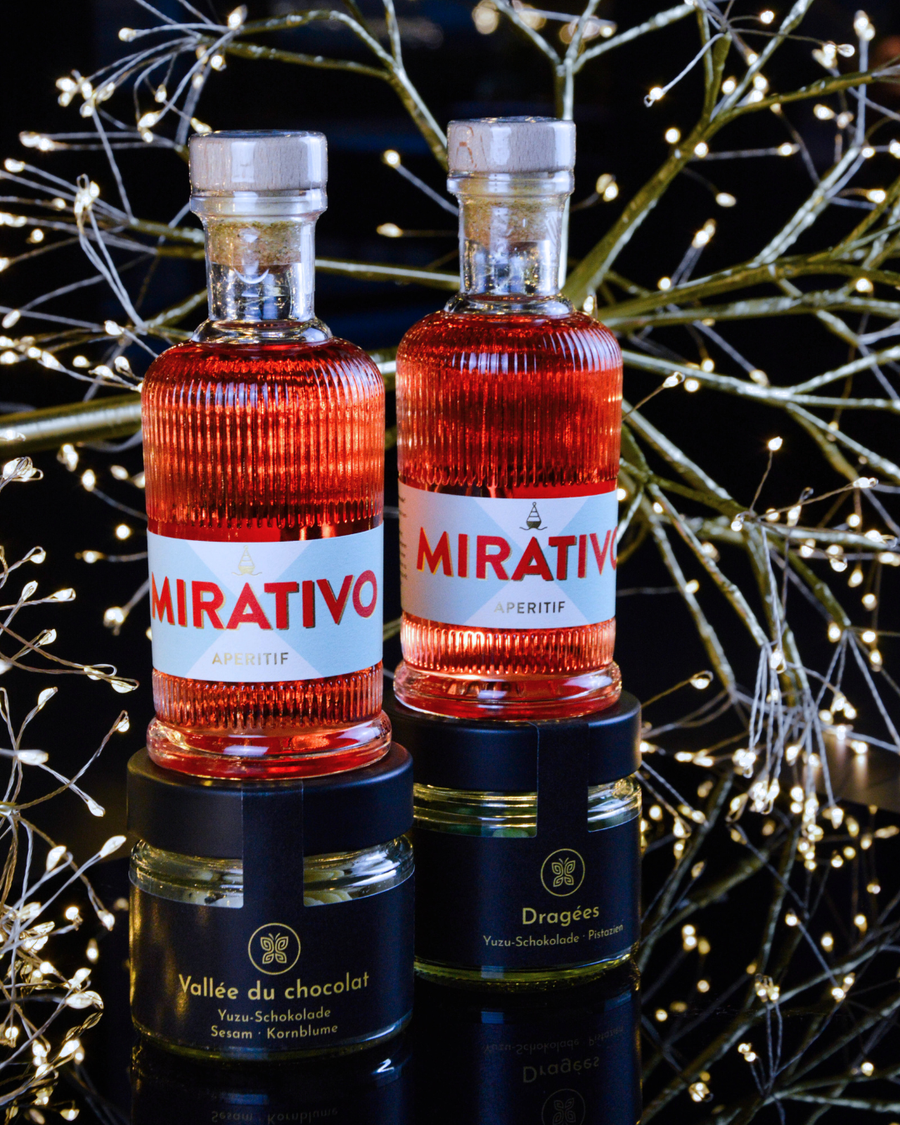 Man nehme Grapefruit-, Mandarinen- und Curaçaoschalen, dazu Akzente von Rhabarber, Enzianwurzel, Thymian und weiteren Botanicals und vereine sie in einer fein ausgewogenen Komposition zu einem bittersüßen, facettenreichen Trinkgenuss. Ob auf Eis, als Spritz, mit Tonic oder im Negroni – Mirativo ist der zitrusfrische Aperitif für die schönen Momente des Lebens.